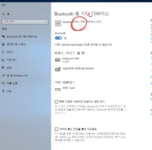 페어링 모드로 전환해서 노트북과 신호를