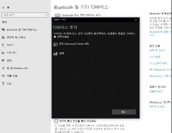 이때 블루투스 장비를 찾는 메뉴를 선택할때